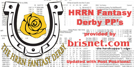 Click on the banner above to download the HRRN Fantasy Derby PP’s from Brisnet.com. PP HORSE TRAINER JOCKEY ODDS 1 Animal Kingdom H. Graham Motion John Velazquez 30-1 2 Alysheba Jack Van Berg Chris McCarron 10-1 3 War Admiral George Conway Charley Kurtsinger 50-1 4 Seattle Slew Billy Turner Jean Cruguet 20-1 5 Mine […]